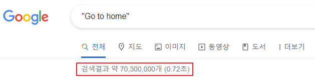 "Go to home"으로 검색하니 약 7천만건이 검색됩니다.