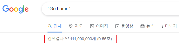 그럼 "Go home"을 검색해 볼까요? 어떤가요? 약 1억 1천만 건이 검색되었습니다.