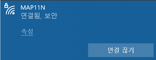 무선AP에 연결되었다면 다음과 같이 "연결됨"으로 표시됩니다.