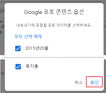 구글 테이크아웃 사이트 통해 구글에서 제공되는 서비스에 포함된 개인 데이터를 로컬로 저장할 수 있습니다. 사이트에 접속하면 전체 서비스 중 데이터를 다운로드 할 서비스를 선택하는 화면으로 전환됩니다. 이 중 Google 포토만 체크합니다. 아래 2가지 메뉴 중 우측 버튼을 누르면 어떤 컨텐츠를 가져올지 선택하실 수 있습니다. 기본은 모두 선택되어 있습니다.